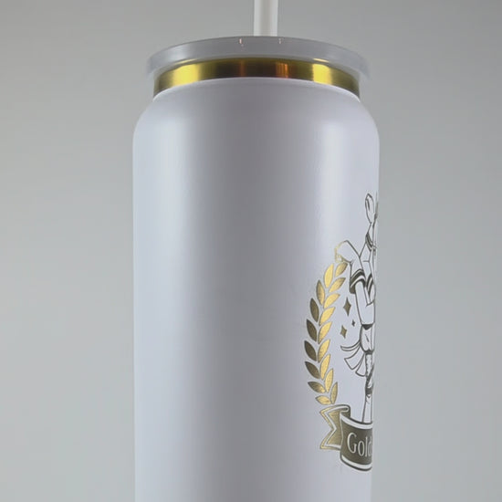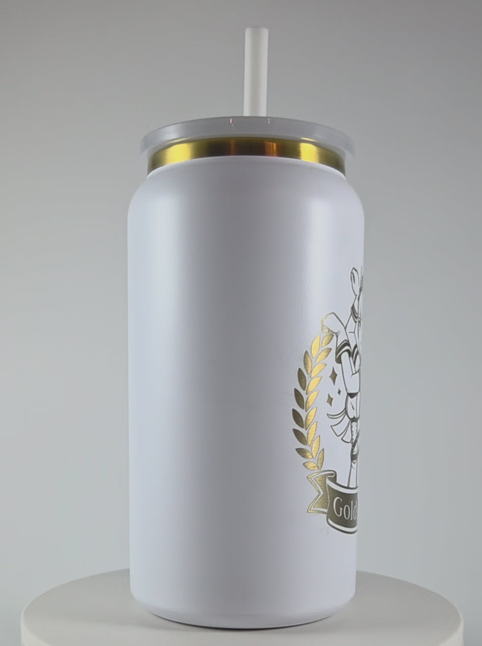 Stunning white tumbler with gold metal design of Umamusume's Gold Ship.