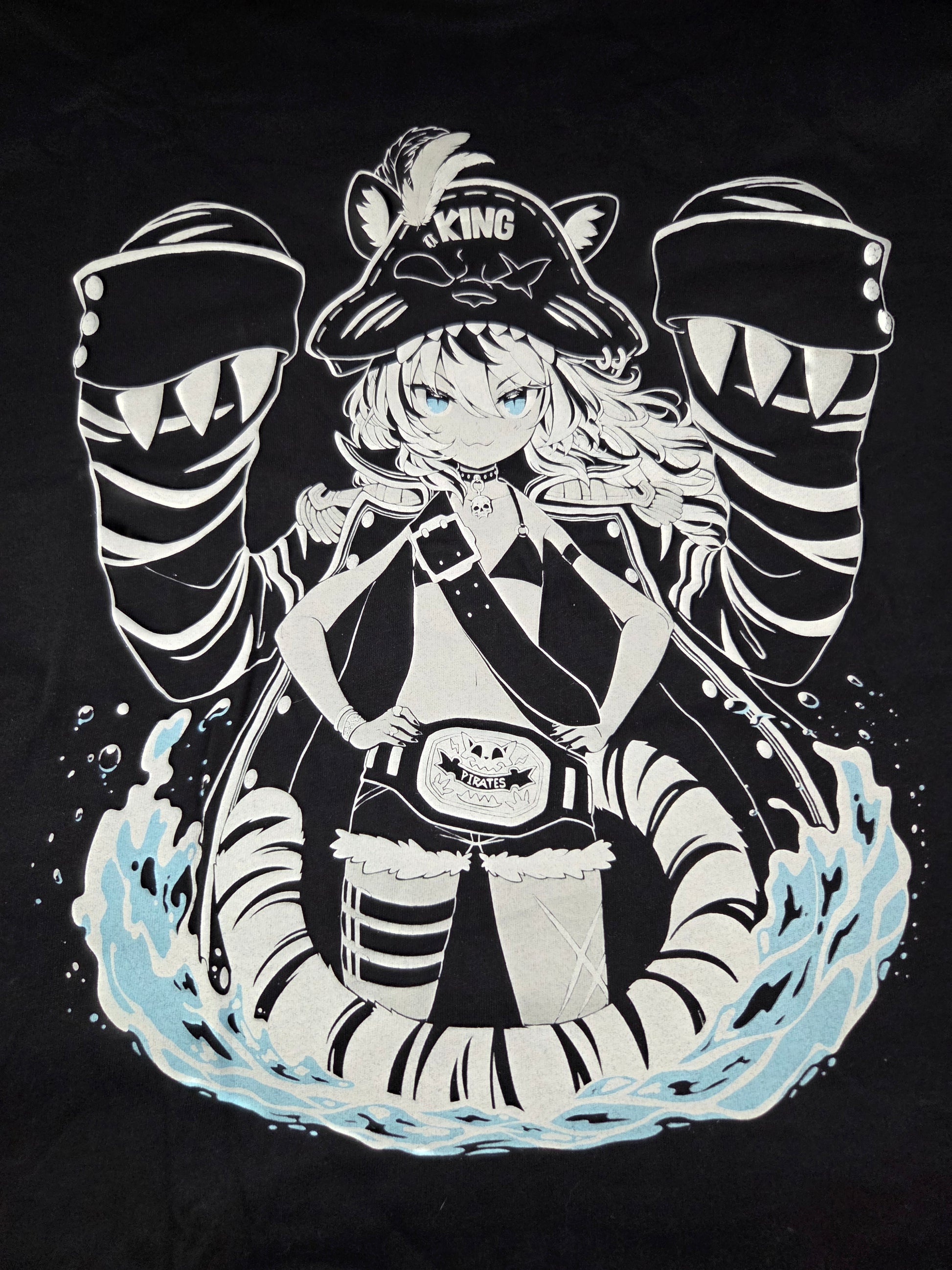 Screen printed design on soft black t-shirts of the White Tiger Captain!