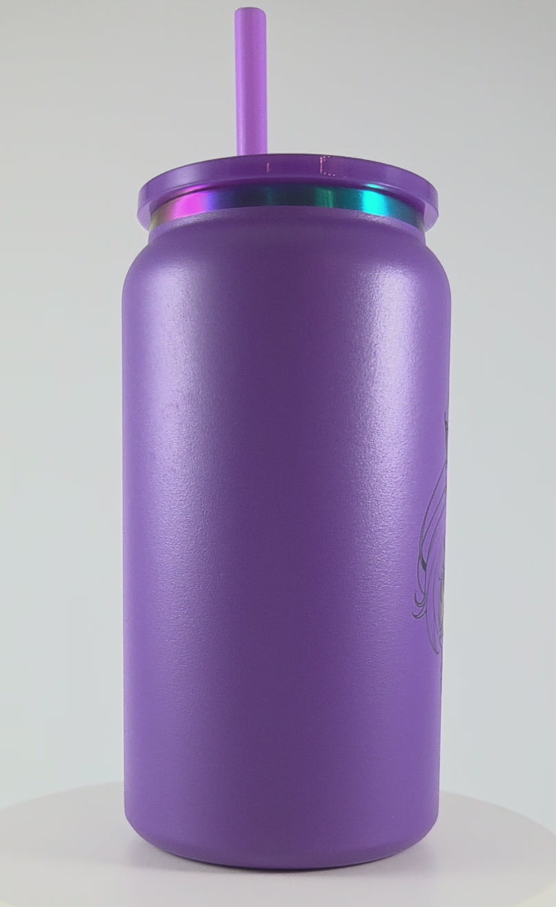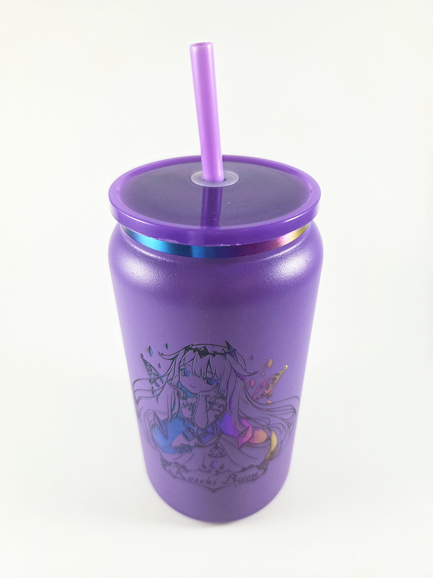 Lovely purple tumbler with rainbow metal design of Hololive's Koseki Bijou.