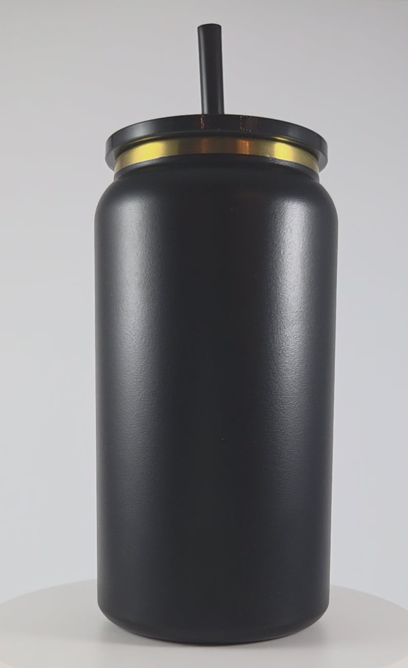 Elegant black tumbler with gold metal design of Hololive's Nerissa Ravencroft.